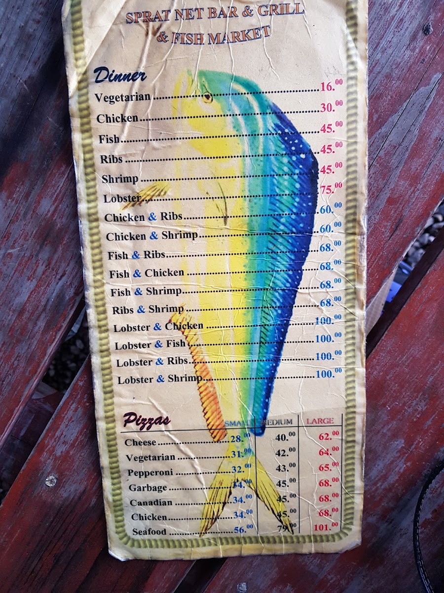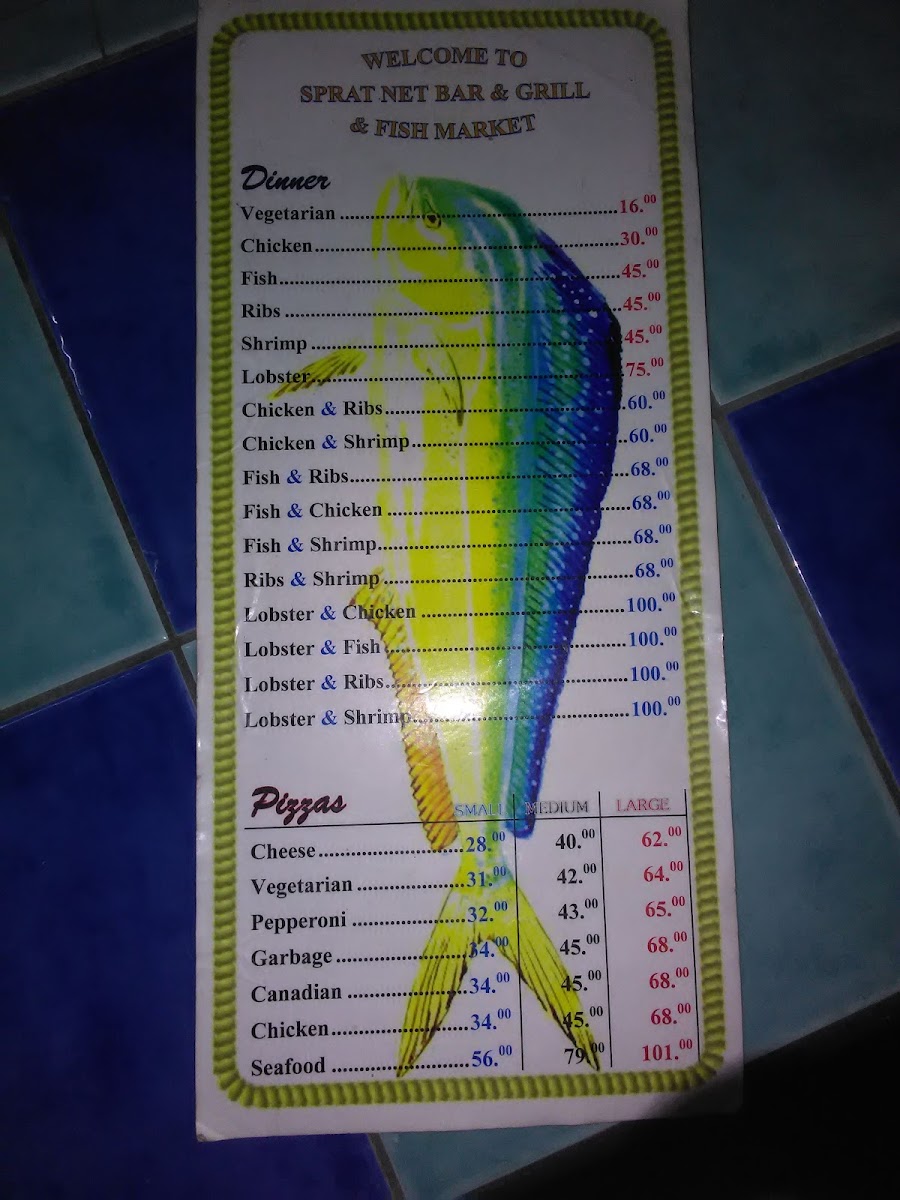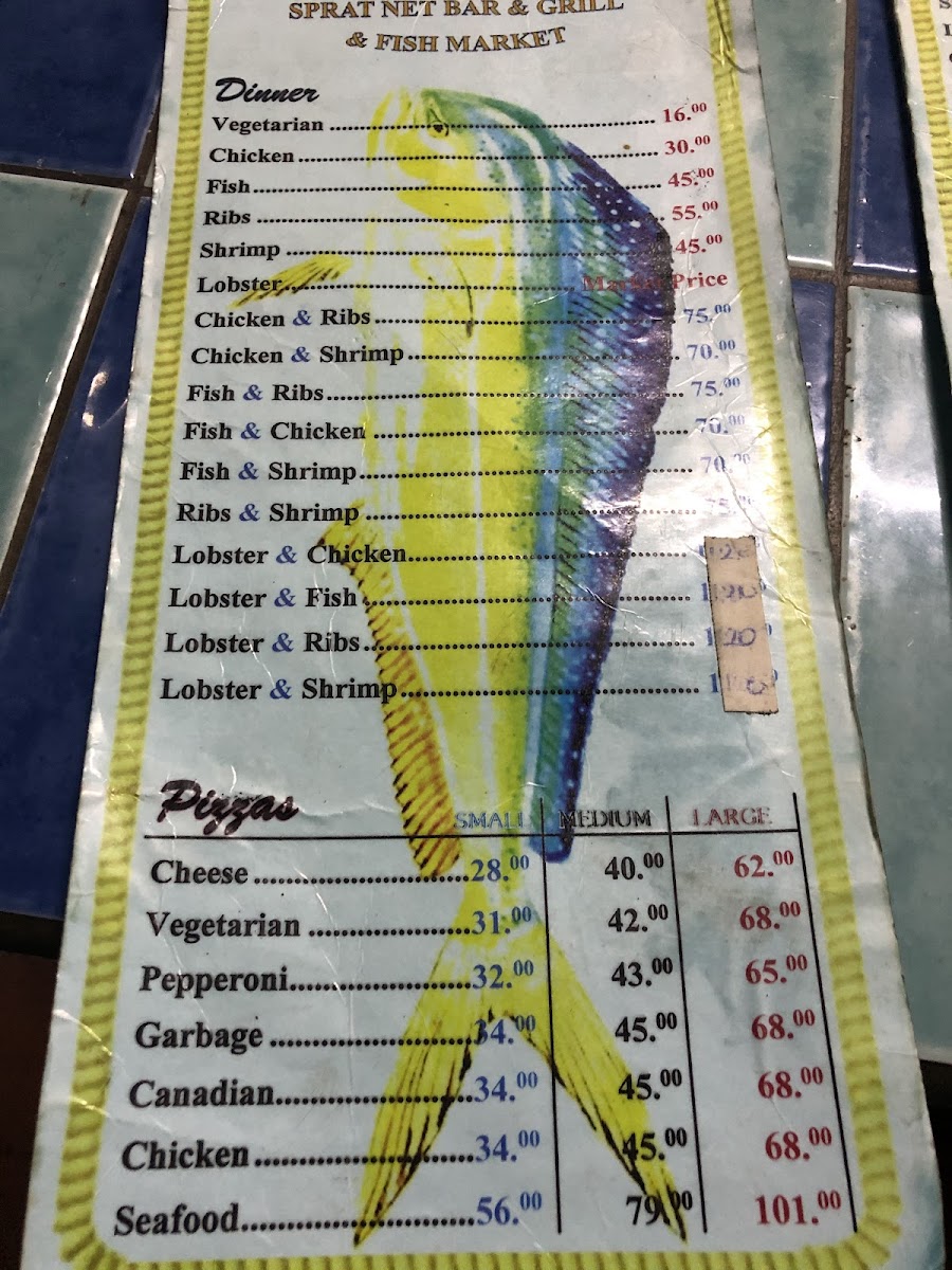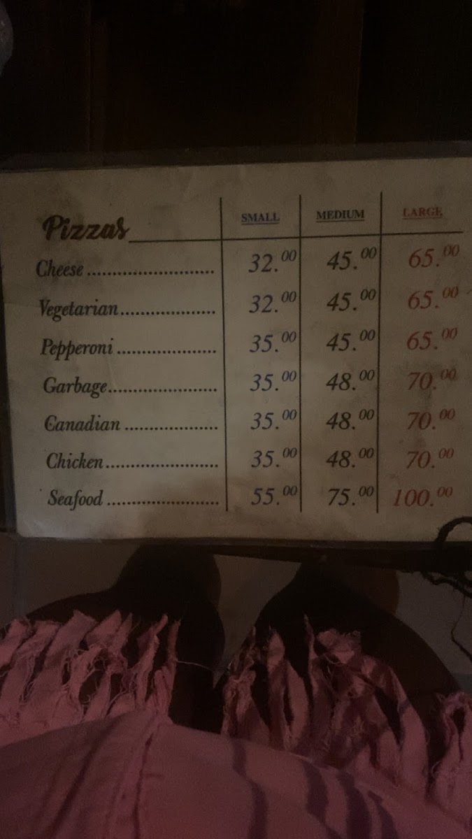 The menu features a variety of seafood options like lobster tail, grilled fish, and baked fish & shrimp kabobs, alongside comforting specialties such as BBQ ribs and pork rib dinners. For those seeking familiar comforts, pizzas like Canadian, pepperoni, and the unique "Garbage Pizza" add a playful touch to the lineup.